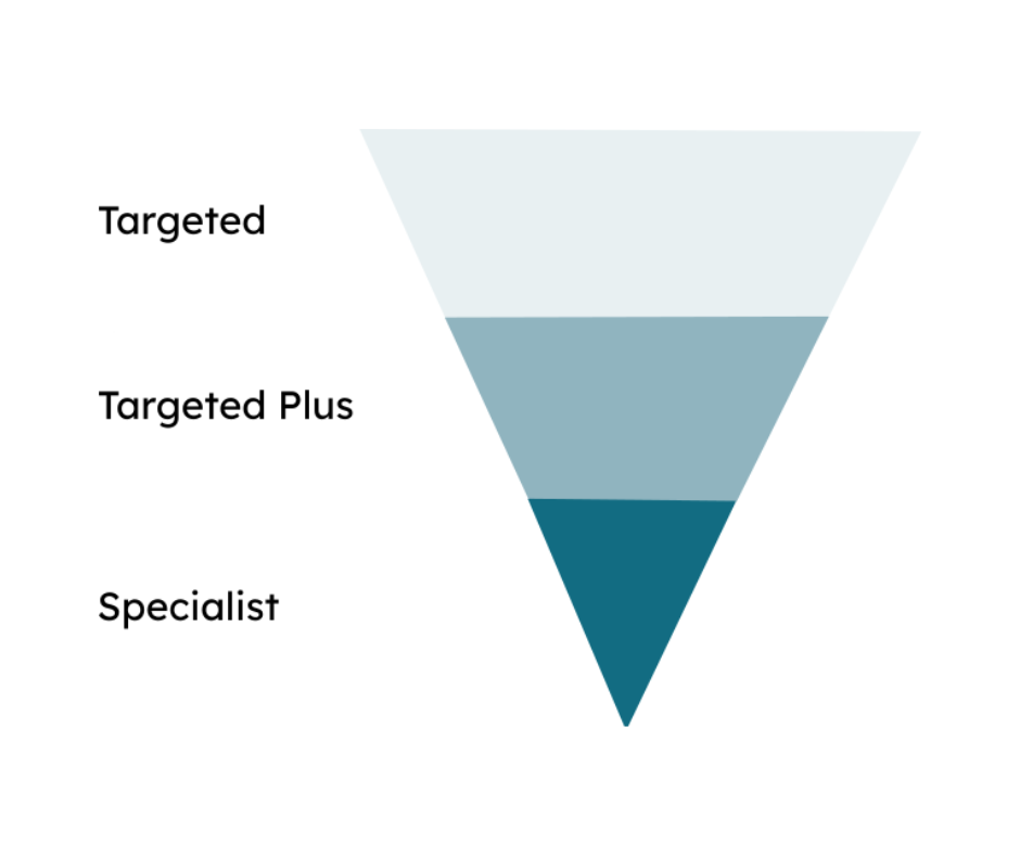 The details of the support criteria that will be in each of the tiers - Targeted, Targeted plus and Specialist
